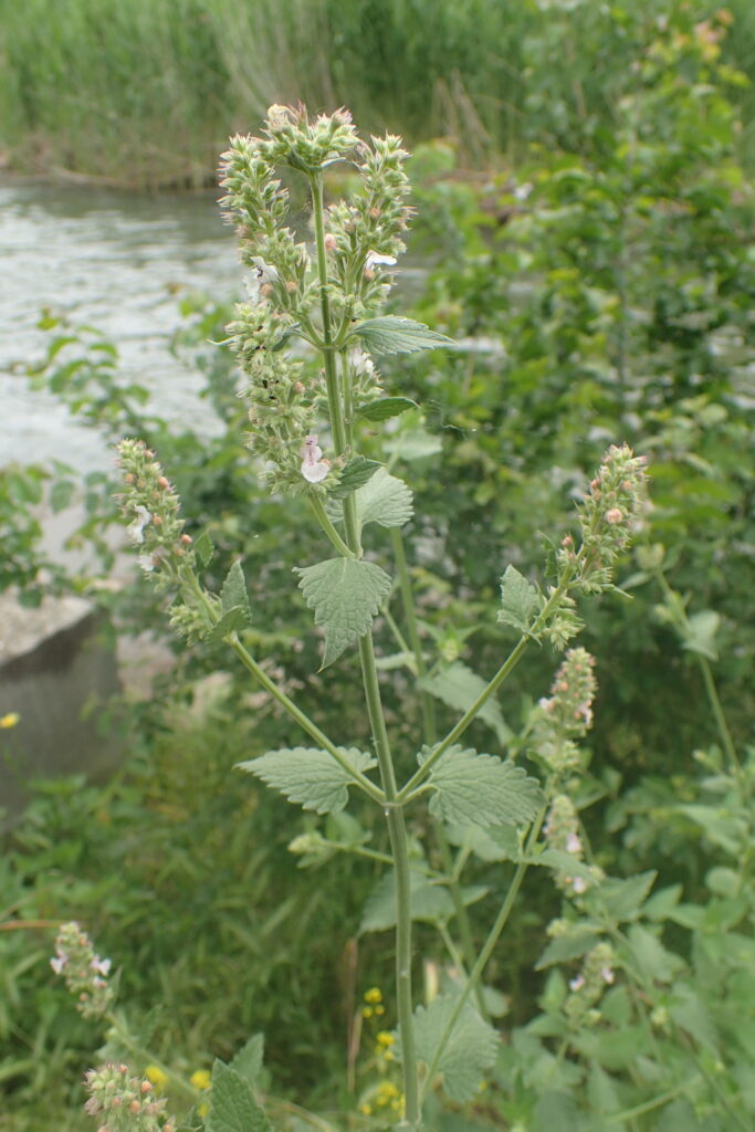 Pravá šanta kočičí (Nepeta cataria) vypadá takhle: vzpřímeně rostoucí kytka s pevnou, rovnou lodyhou, vysoká klidně i metr, a hlavně bíle kvetoucí!!